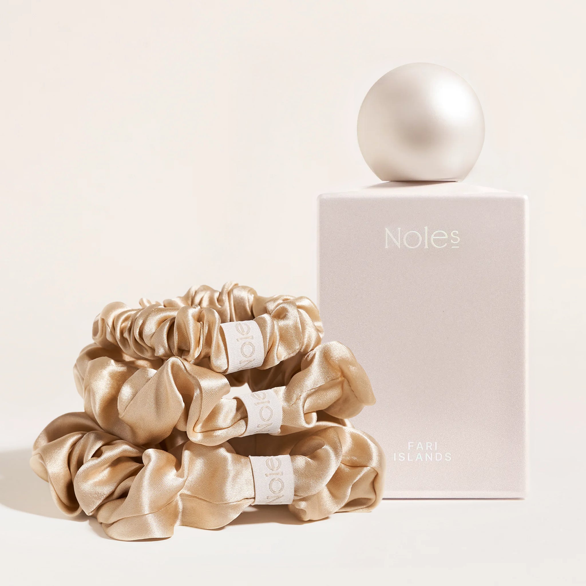 Fari Islands und unsere Seiden Scrunchies champagner – ein perfect Match! Im Set erhältst du beide Produkte mit 15% Preisvorteil. Ideal zum Verschenken an deine Liebsten oder für dich selbst.