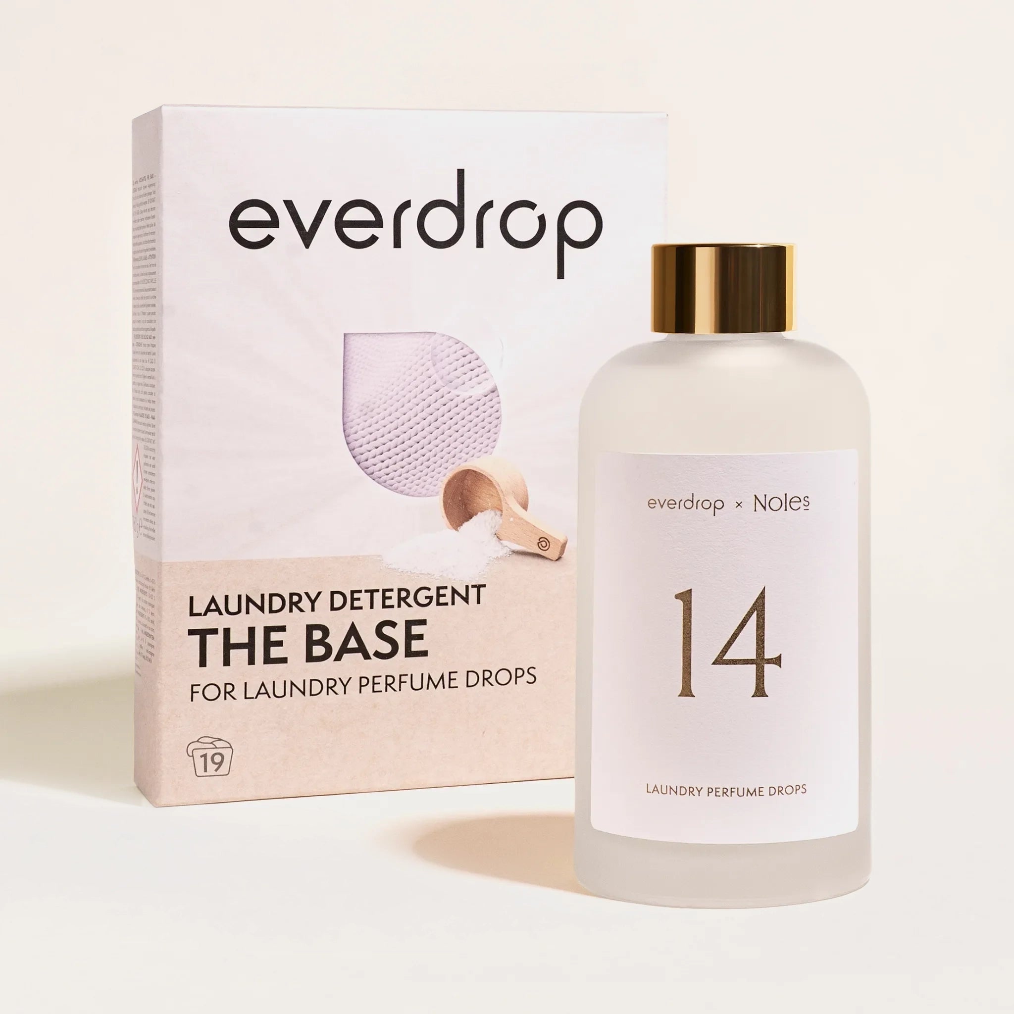 Im Starter Kit erhältst du eine Flasche des limitierten NOLES 14 Wäscheparfüms sowie das parfümfreie Colorwaschmittel THE BASE von everdrop. So hast du eine perfekte Basis für dein erstes Dufterlebnis: ein neutrales Waschmittel ohne Duftstoffe und unser Wäscheparfüm für den eleganten Duft im letzten Spülgang.