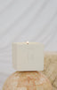 Aus einer pflanzlichen Rapswachsmischung; das Gefäß ist ein eigens designtes, eckiges Beton-Objekt.