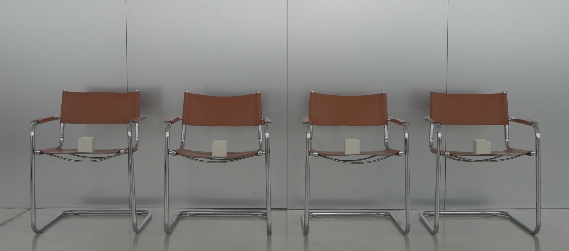 Aus einer pflanzlichen Rapswachsmischung; das Gefäß ist ein eigens designtes, eckiges Beton-Objekt.