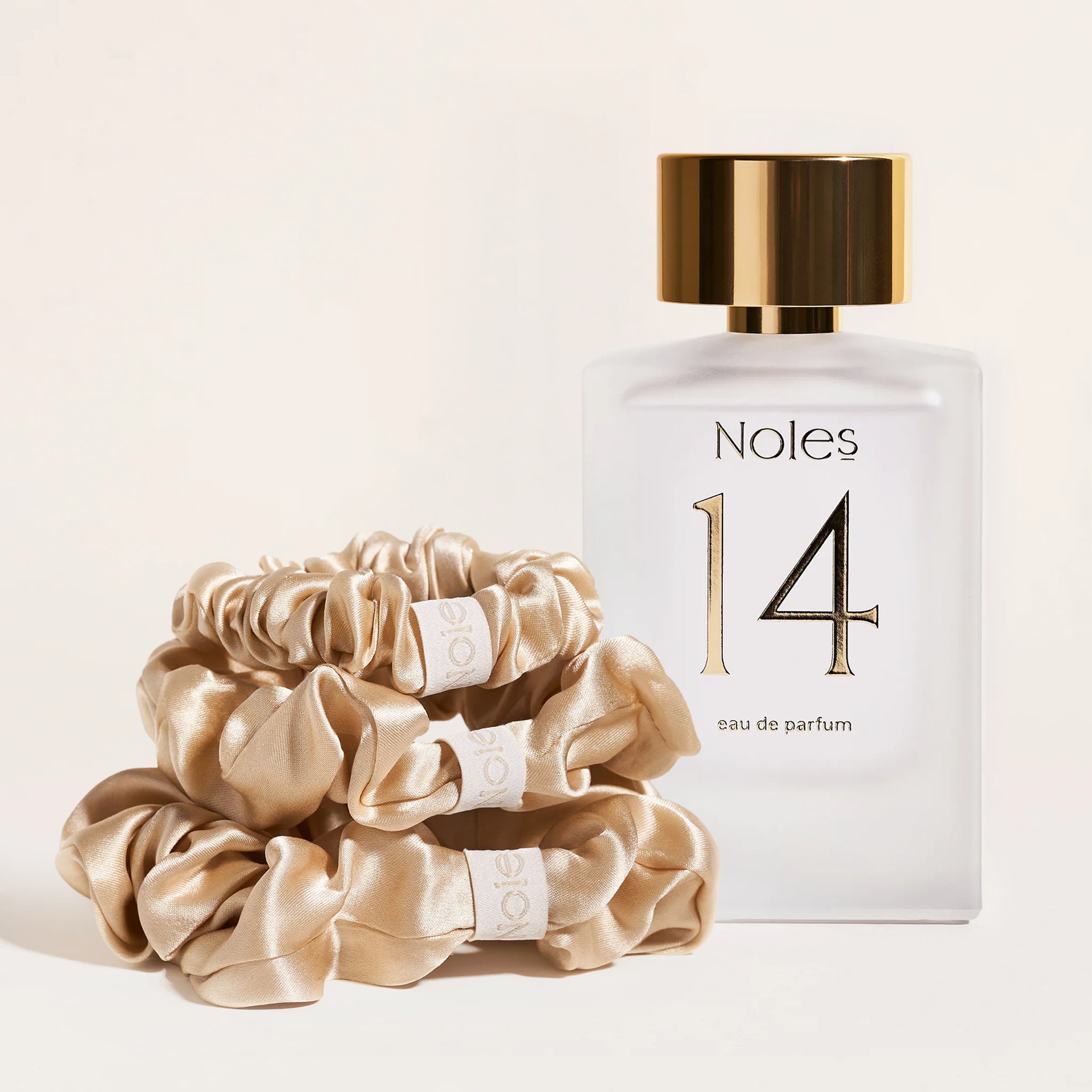 NOLES 14 und unsere Seiden Scrunchies champagner – ein perfect Match! Im Set erhältst du beide Produkte mit 15% Preisvorteil. Ideal zum Verschenken an deine Liebsten oder für dich selbst.