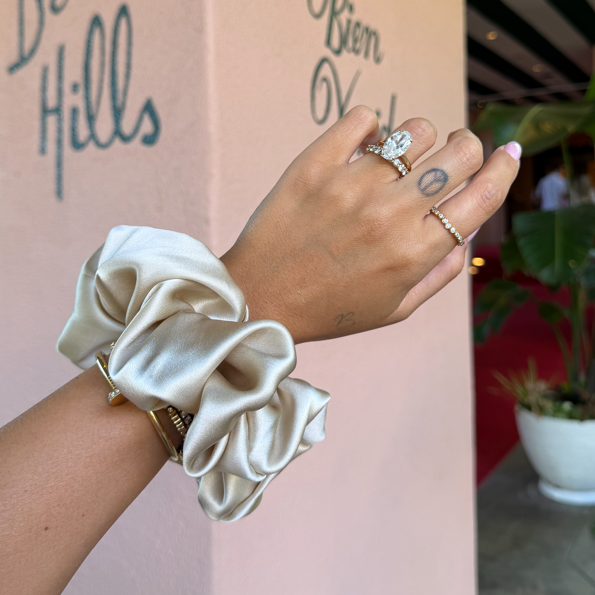 Wir empfehlen das Scrunchie nicht zu waschen, da Seide sehr empfindlich ist.